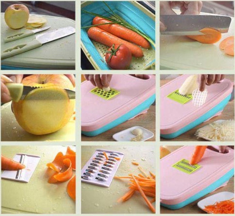 Experimente uma maneira inteligente e prática de cortar, ralar e lavar vegetais e frutas com nossa tábua de corte multifuncional!